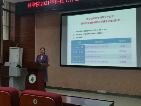 2022年1月4日下午,公司在112报告厅召开伟德国际bevictor19462021年科技工作总结暨2022年国家自然科学基金申报动员会。学院领导班子全部出席,学院全体专职教师参加大会,会议由副经理杨梅同志主持。