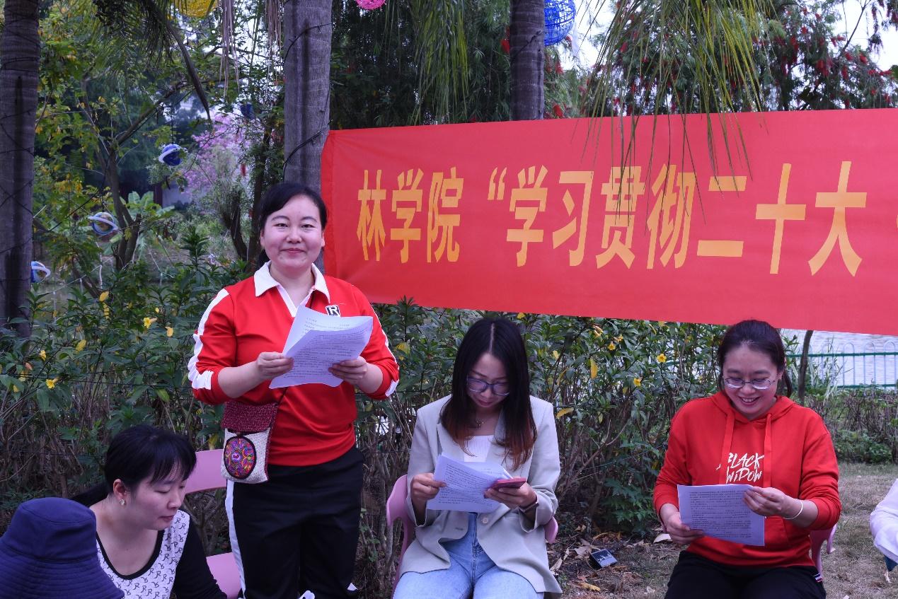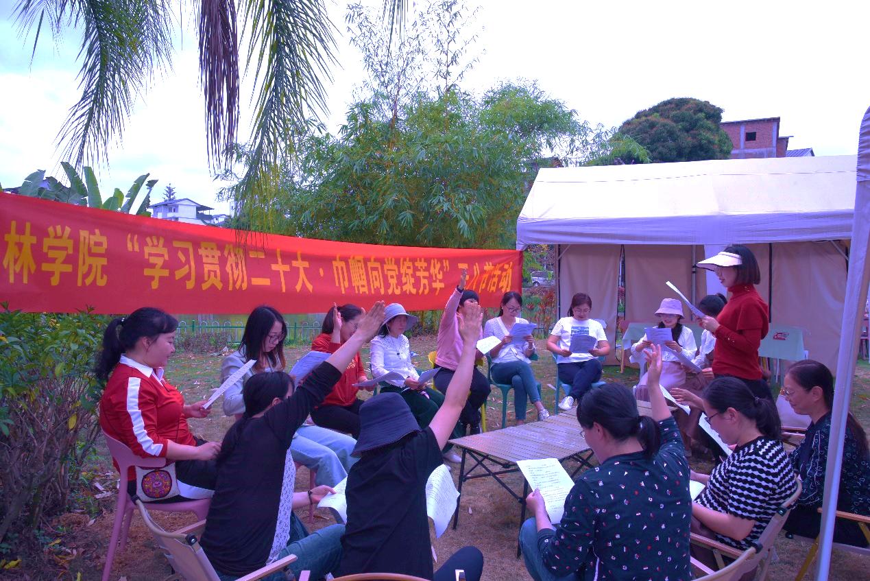 活动中,大家踏着轻快的步伐,三五成群,或驻足美景,或拍照留念,或说笑逗乐,或轻松惬意,其乐融融。在“学习贯彻党的二十大”知识竞赛中大家聚精会神,踊跃抢答,充分展现女教职工勇于拼搏、敢于争先的精神风貌。