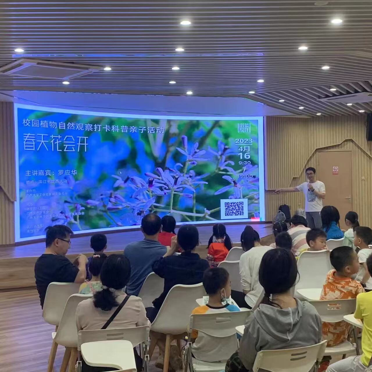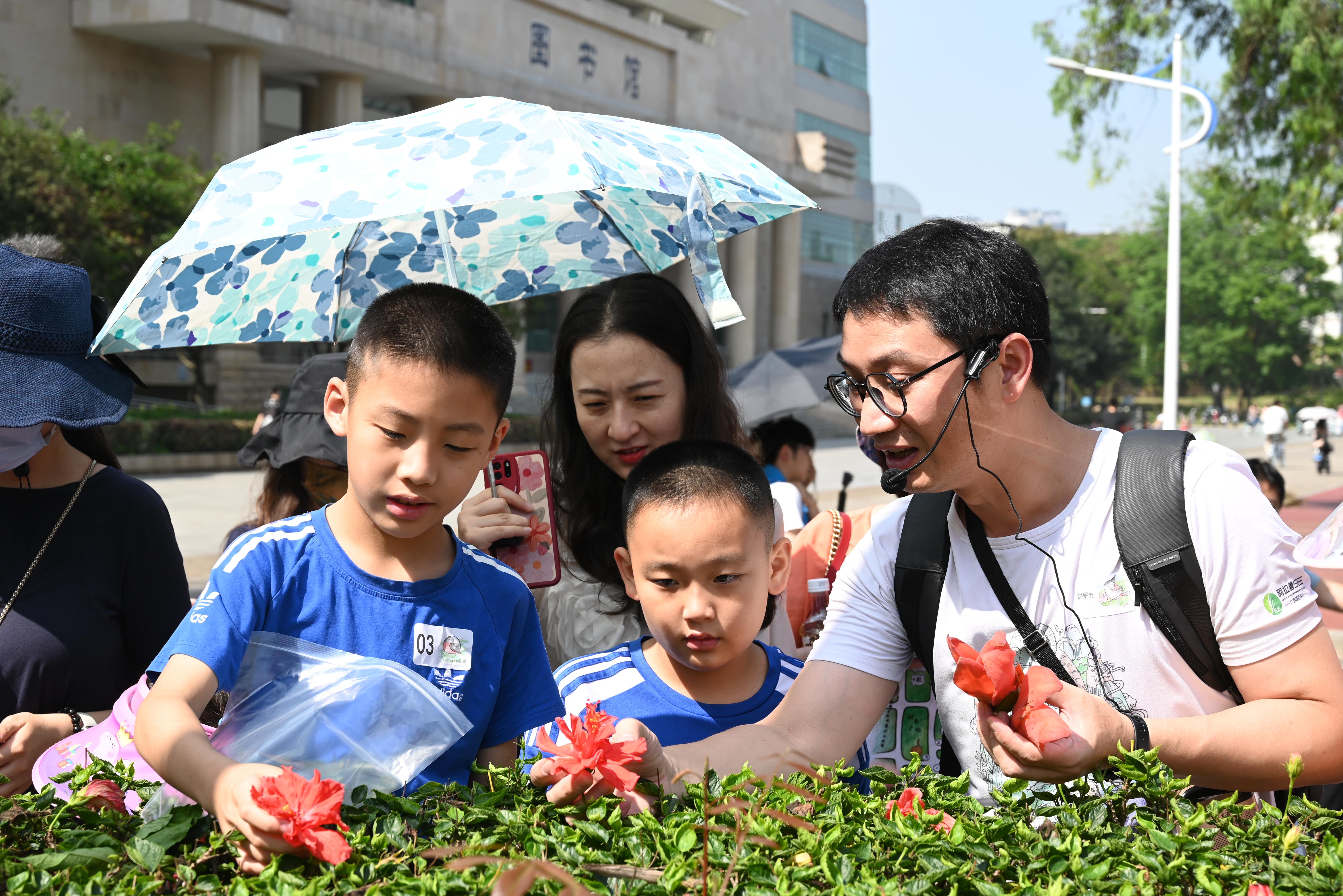 活动伊始,罗应华副教授通过问答的方式与孩子们进行科普知识问答,如 “植物为什么要开花”、 “南宁市市花是什么”等,提出了许多有趣的问题,孩子们的热情很快被调动起来,纷纷抢答,活动气氛轻松、欢快,孩子们听得津津有味。