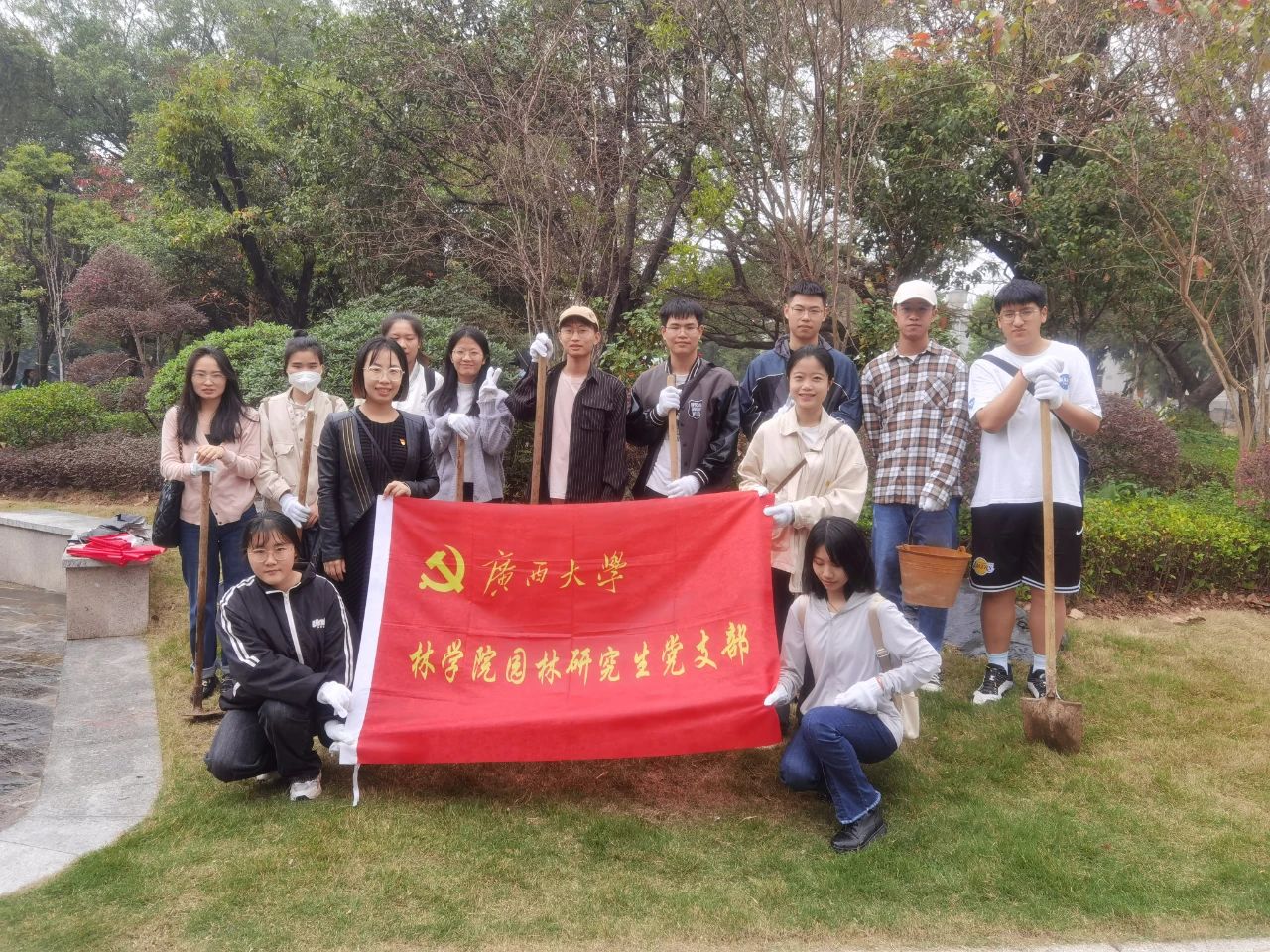 春风送暖,百卉含英,为深入学习贯彻党的二十大精神,以实际行动弘扬雷锋精神,在第45个植树节来临之际,3月12日下午,伟德国际bevictor1946园林研究生党员来到西校园公共绿地,与其他学院代表一道,开展“校园党旗红,养护生态绿”树木养护志愿服务活动。