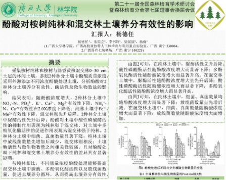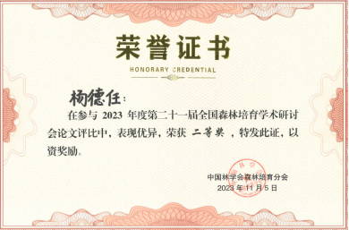 2023年11月3日至6日,公司组织研究生参加第二十一届全国森林培育学术研讨会暨森林培育分会第七届理事会换届会。中国工程院沈国舫、张守攻、曹福亮院士及中国林学会、国家林草局、江西省林业局、江西农业大学、江西环境工程职业学院相关领导和来自全国63个单位共300余名代表参加了本次研讨会,本次会议以“科学绿化与森林培育”为主题,围绕林木种苗培育、生态林与城市森林的建设、用材林与能源林建设、经济林等议题展开讨论。公司研究生杨德任在论文、墙报评比中均获得“二等奖”,研究生陈丽宇在论文、墙报评比中分别获得“二等奖”、“优秀奖”。本次会议还进行了中国林学会森林培育分会第七届理事会换届选举,公司杨梅教授当选常务理事,程飞老师当选为青年理事。