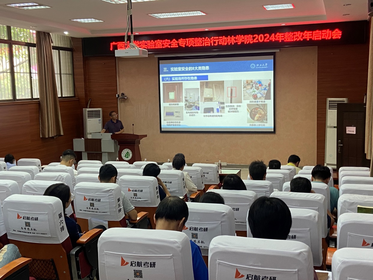 招礼军对实验室安全专项整治的必要性、学院实验室安全管理及分级分类情况、实验室安全的8大类隐患及公司实验室常见隐患进行详细介绍,并结合学校实验室安全专项整治三年行动计划,对学院行动实施方案整改项目及要点作具体工作安排。