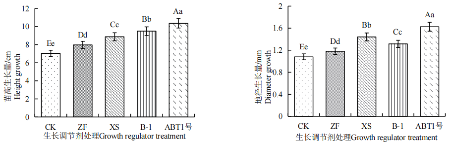 图5不同植物生长调节剂处理下望天树苗木的苗高、地径生长量