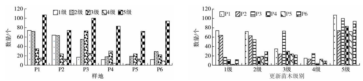 图3样地幼苗、幼树的数量结构和更新苗的数量结构
