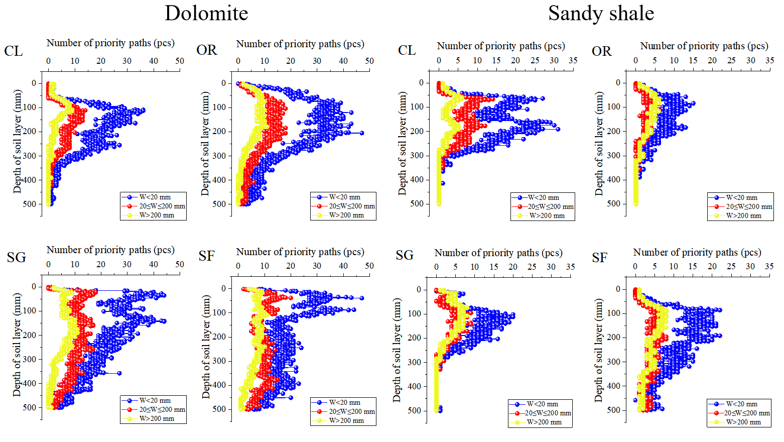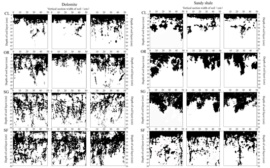 该研究采用原位染色示踪技术以及圆盘入渗方法,定量分析白云岩和砂页岩土壤水文过程包括优先流发育和入渗性能,并结合根系分布、土壤性质等因素,阐明了两种典型岩性土壤水文过程及驱动因素的异同点。结果表明:白云岩土壤优先流分化程度高,多呈树枝状和斑块状,以垂向延伸为主;砂页岩土壤优先流因侧渗明显,多呈团状和块状分布,分化程度较低。白云岩土壤不同宽度染色路径均大于砂页岩,两种土壤的壤中流均以大孔隙流为主。土壤稳定入渗率均随着压力水头的增大而增大,且白云岩土壤导水能力强于砂页岩。岩性的变化造成植被根系分布以及土壤性质差异是影响土壤优先流和入渗的重要因子。该研究揭示了喀斯特地区不同岩性发育土壤的水文特征及其驱动因素,为区域石漠化综合治理以及水资源的合理利用提供科学支撑。