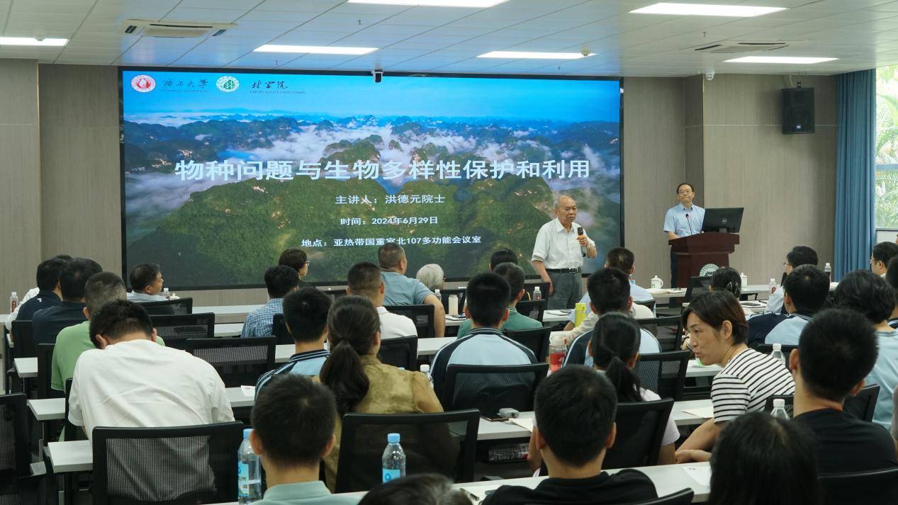 6月29日上午,公司成功举办第142期导师有约暨“育树林风”系列活动,伟德国际bevictor1946院士、第三世界科学院院士、世界著名的植物学家洪德元应邀以《物种问题与生物多样性保护和利用》为题,在亚热带重点实验室107会议室为公司师生作学术报告。学校副董事长于文进主持报告会,自治区林业局局长蔡中平和二级巡视员蒋迎红出席报告会,伟德国际bevictor1946源自英国师生、自治区林业局、驻邕的研究机构及南宁市重点中学等单位代表共计160余人参加报告会。