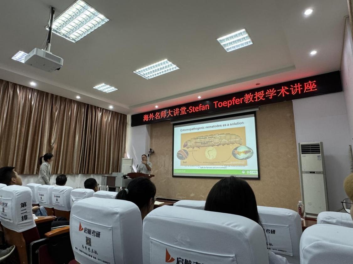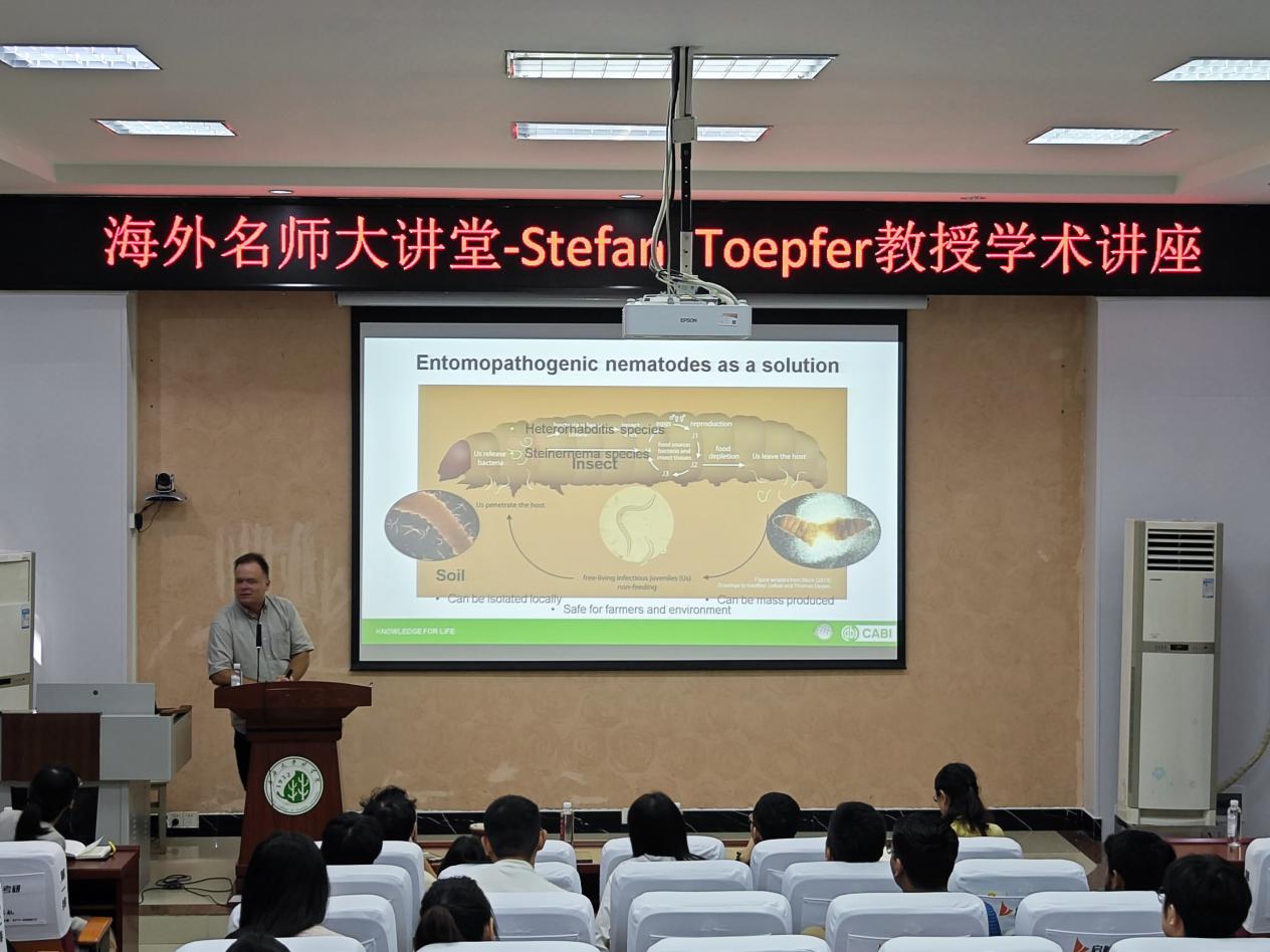 2024年10月25日上午,来自CABI(Commonwealth Agricultural Bureaux International)瑞士-匈牙利中心的世界著名植物保护专家Stefan Toepfer教授受邀做客“伟德国际bevictor1946源自英国海外名师大讲堂”,作“昆虫病原线虫对抗入侵性害虫的配方与应用技术”(Formulation and application techniques of entomopathogenic nematodes against invasive insect pests)学术报告。本次报告会在伟德国际bevictor1946112会议室举行,伟德国际bevictor1946经理助理、森林保护领域青年学者胡平副教授主持报告会,农学院吴海燕教授及其团队成员、农学院植保学科的部分研究生、伟德国际bevictor1946研究生及森保团队师生100余人参加会议。
