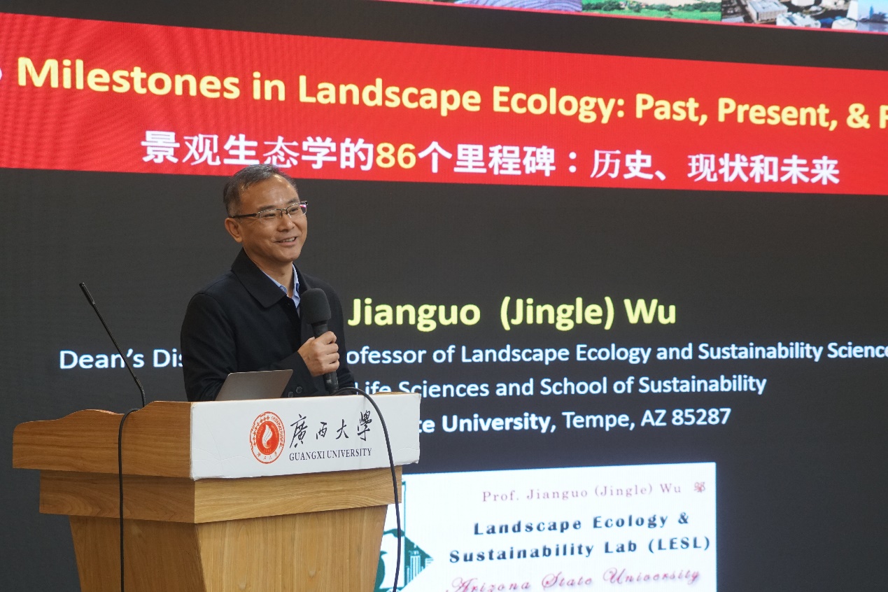 2025年3月21日上午,美国亚利桑那州立老员工命科学学院和可持续科学学院“经理特聘教授”邬建国教授受邀做客“伟德国际bevictor1946源自英国海外名师大讲堂”,作“景观生态学的86个里程碑:历史、现状和未来”(86 Milestones in Landscape Ecology: Past, Present, &Future)学术报告。本次报告会在老员工活动中心三楼会议室举行,由公司副经理招礼军主持,伟德国际bevictor1946本科生、研究生及教师100余人参加会议。