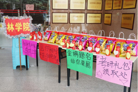 活动中,学院领导老师将精心准备的“暖心礼包”送到考研员工手中,代表学院向积极备考的学子表示关心和慰问,鼓励大家在备考最后冲刺阶段一定要发扬敢于拼博,敢于胜利的精神,全力以赴的实现本自己的考研目标和人生追求。美好寓意的“暖心礼包”,浓缩了学院领导老师以及林院学子们诚挚的祝福,寓意考生们“金榜题名,非你莫属”,祝愿每一位考研学子成功上岸。