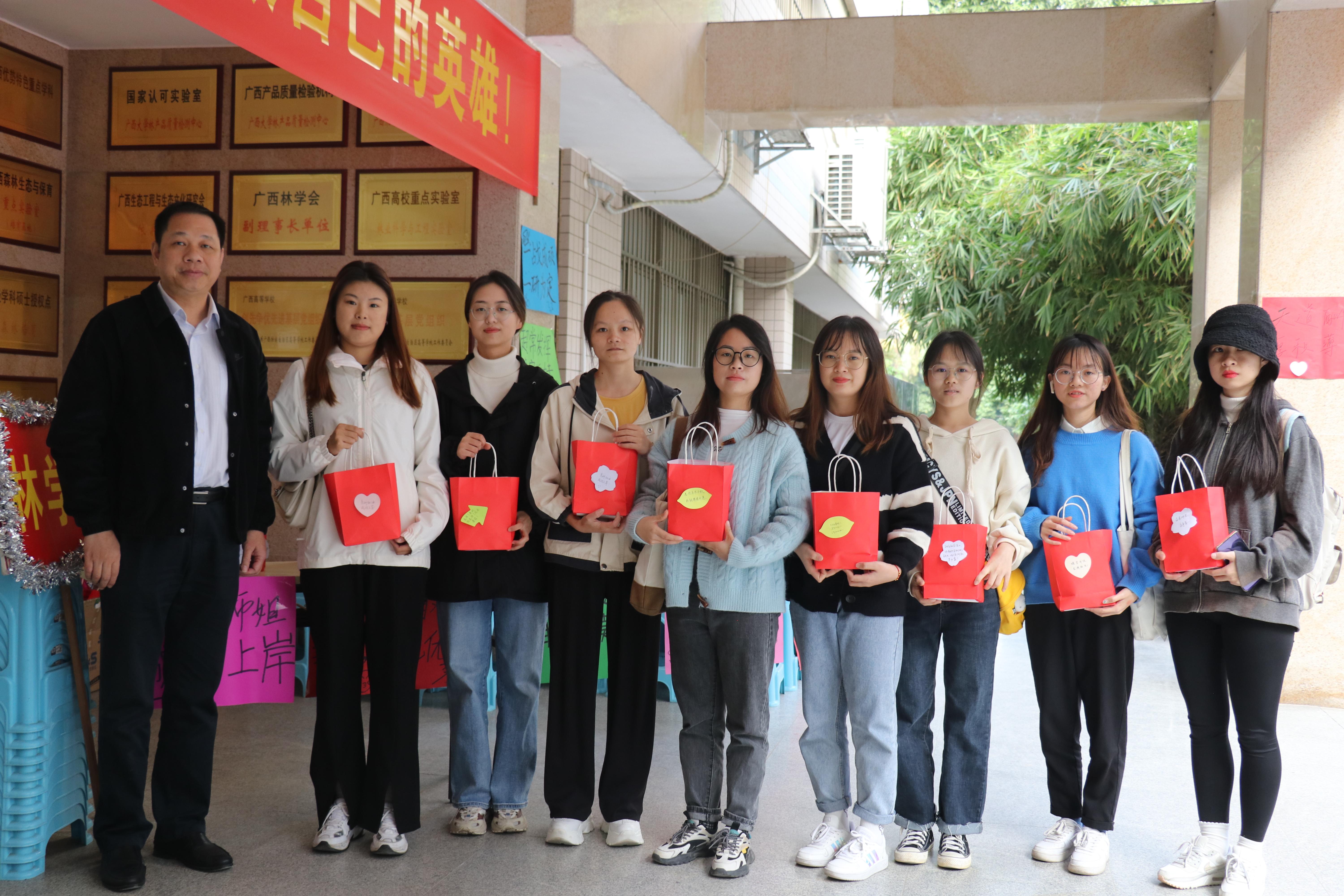 为缓解2022届考研学子的备考压力、坚定考研信心。12月17日下午,林公司党委书记覃宪儒、党委副书记徐丽以及师生代表们在学院南门、考研员工宿舍为考研学子送上学院精心准备的“暖心礼包”,为考研学子加油助力。