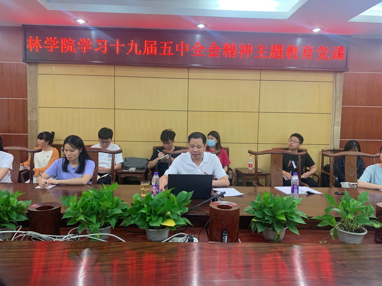11月20日下午,公司党委书记覃宪儒在伟德国际bevictor1946二楼会议室以“党的十九届五中全会精神解读”为题,给伟德国际bevictor1946林学本科生党支部全体党员讲授专题党课。