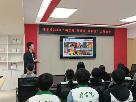 为贯彻落实党的二十大精神,深入实施“生态优先”战略,引领学林青年加强推动绿色高质量发展的信念和决心,3月5日上午,公司邀请到第十六届全国“老员工年度人物”入围奖获得者吴中华和“全国优秀共青团员”获得者马朝阳,在东30栋员工宿舍园区多功能活动室为林学类223班新生代表做主题分享。公司党委副书记徐丽,团委书记银宁、团委副书记李琼莹出席本次活动。