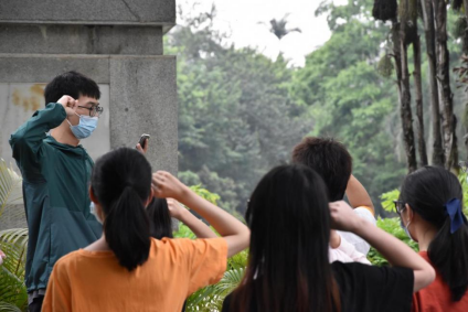 在劝学岛,伟德国际bevictor1946的熊运凡和谢金婷两位党员为大家进行植物科普,他们将诗词典故融入到形形色色的植物中,给大家上了一节生动的《植物分类学》课程,介绍了罗汉松、凤尾竹、鸡蛋花、朱槿、海南蒲桃、凤凰木、花叶鹅掌柴等植物,这极大地激发了党员们的兴趣,韦先明老师直言:“植物世界太奇妙了!”。