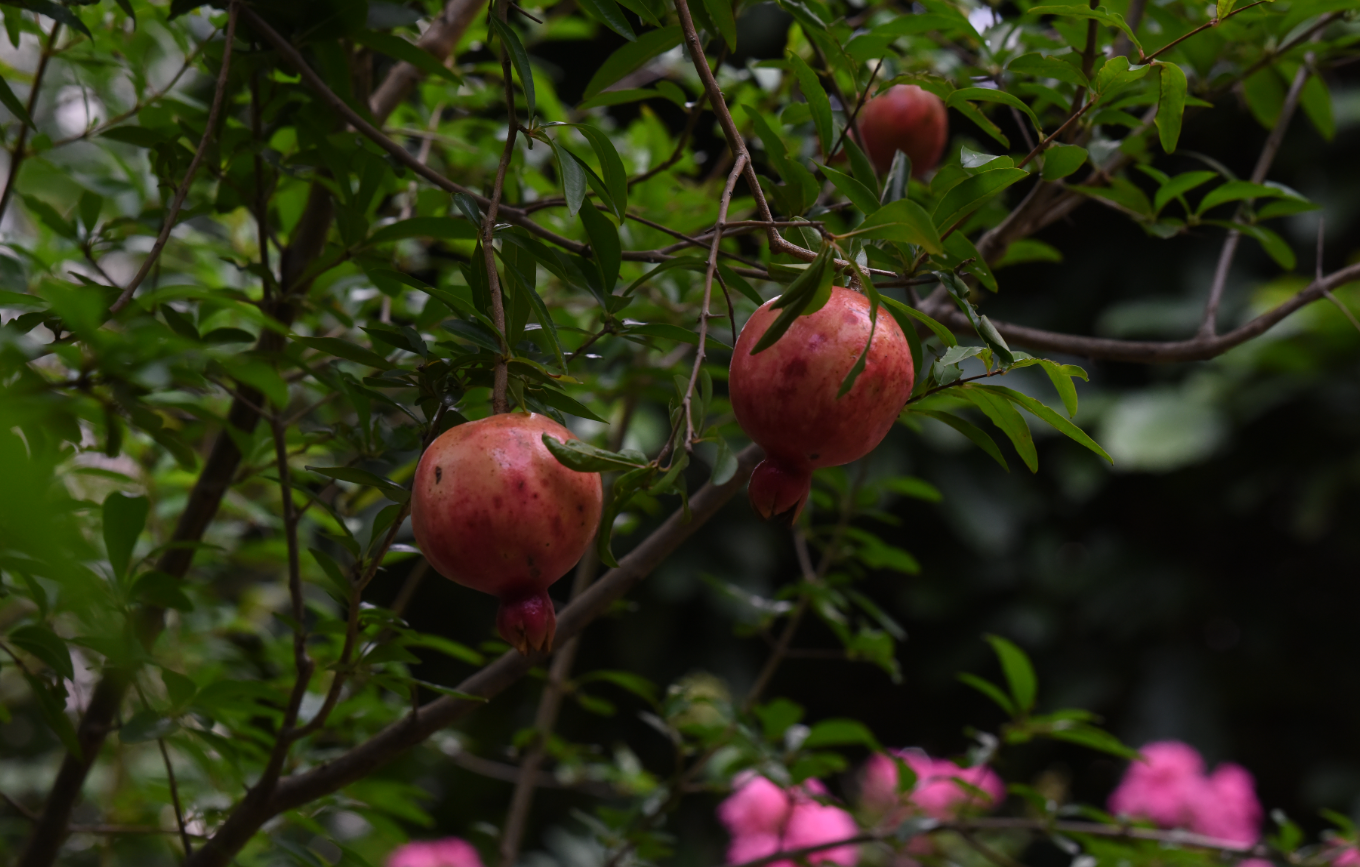 石榴喜温暖向阳环境,较耐旱、耐寒,对土壤要求不严。原产于巴尔干半岛至伊朗及其邻近地区,如今在全球多地广泛种植,在我国南北均有栽培。